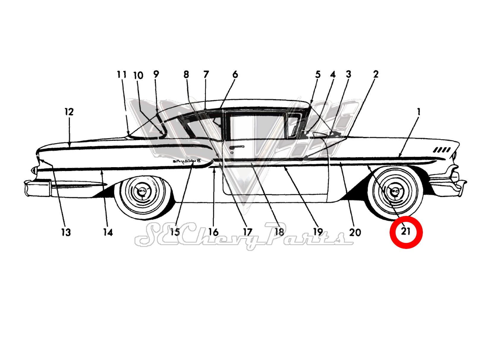 1958 Chevy Biscayne Brookwood NOS RIGHT Lower Fender Molding #3759422 #3749312