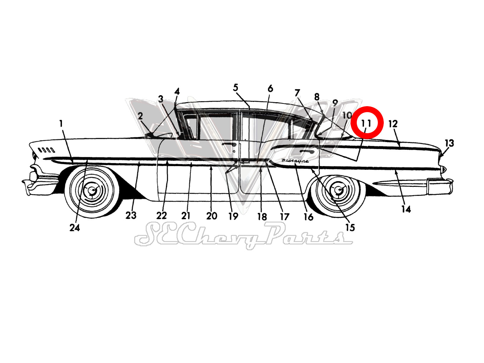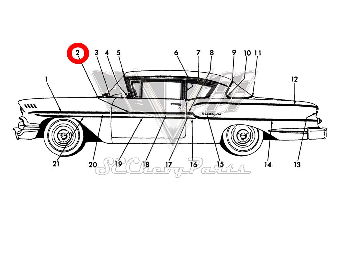 1958 Chevy Biscayne 2-Door Front Door Upper Molding LEFT 3759479