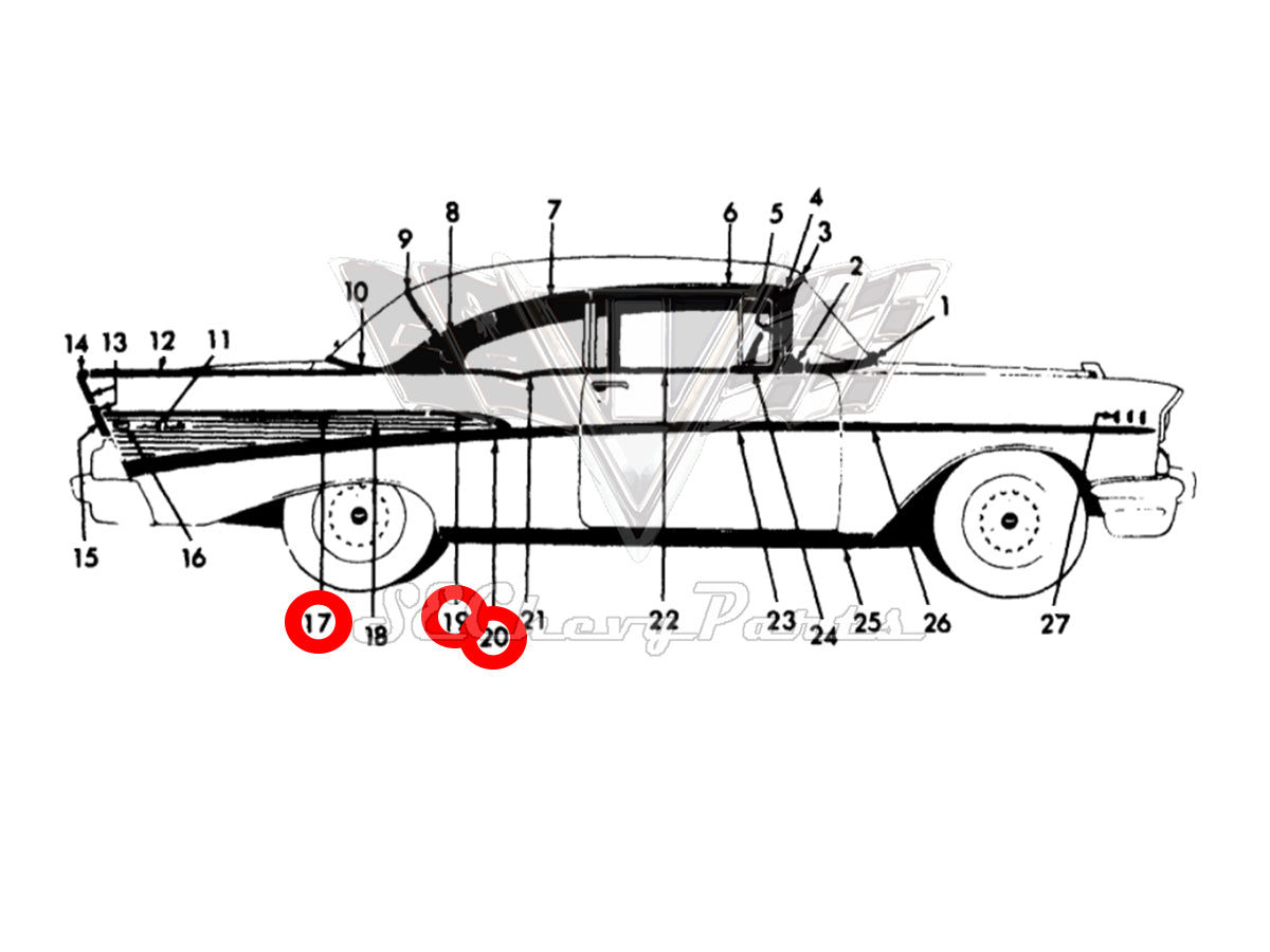 1957 Chevy Bel Air 210 Rear Quarter Molding Trim Set RIGHT RESTORED