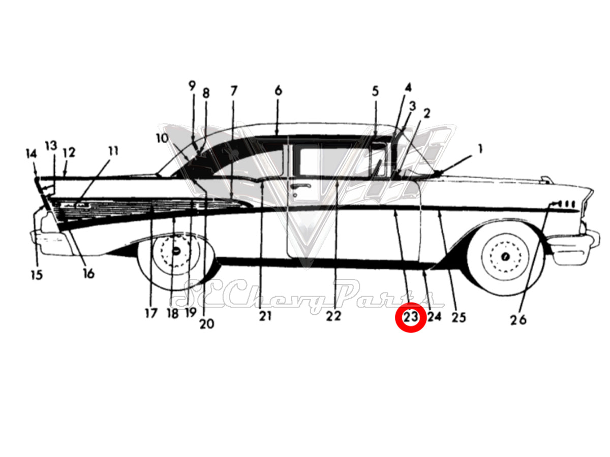 1957 Chevy Bel Air 2-Door Molding Trim RIGHT SHOW