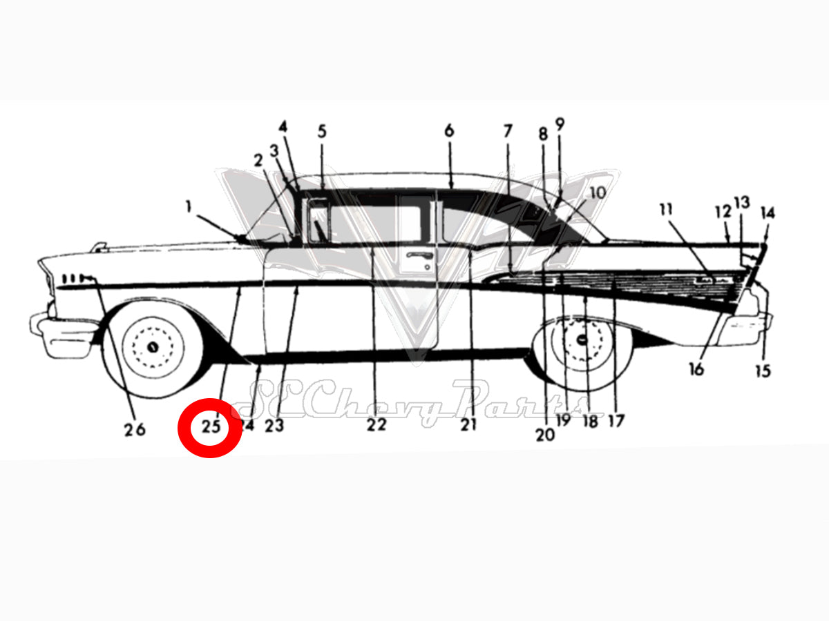 1957 Chevy Bel Air Fender Molding Trim LEFT SHOW