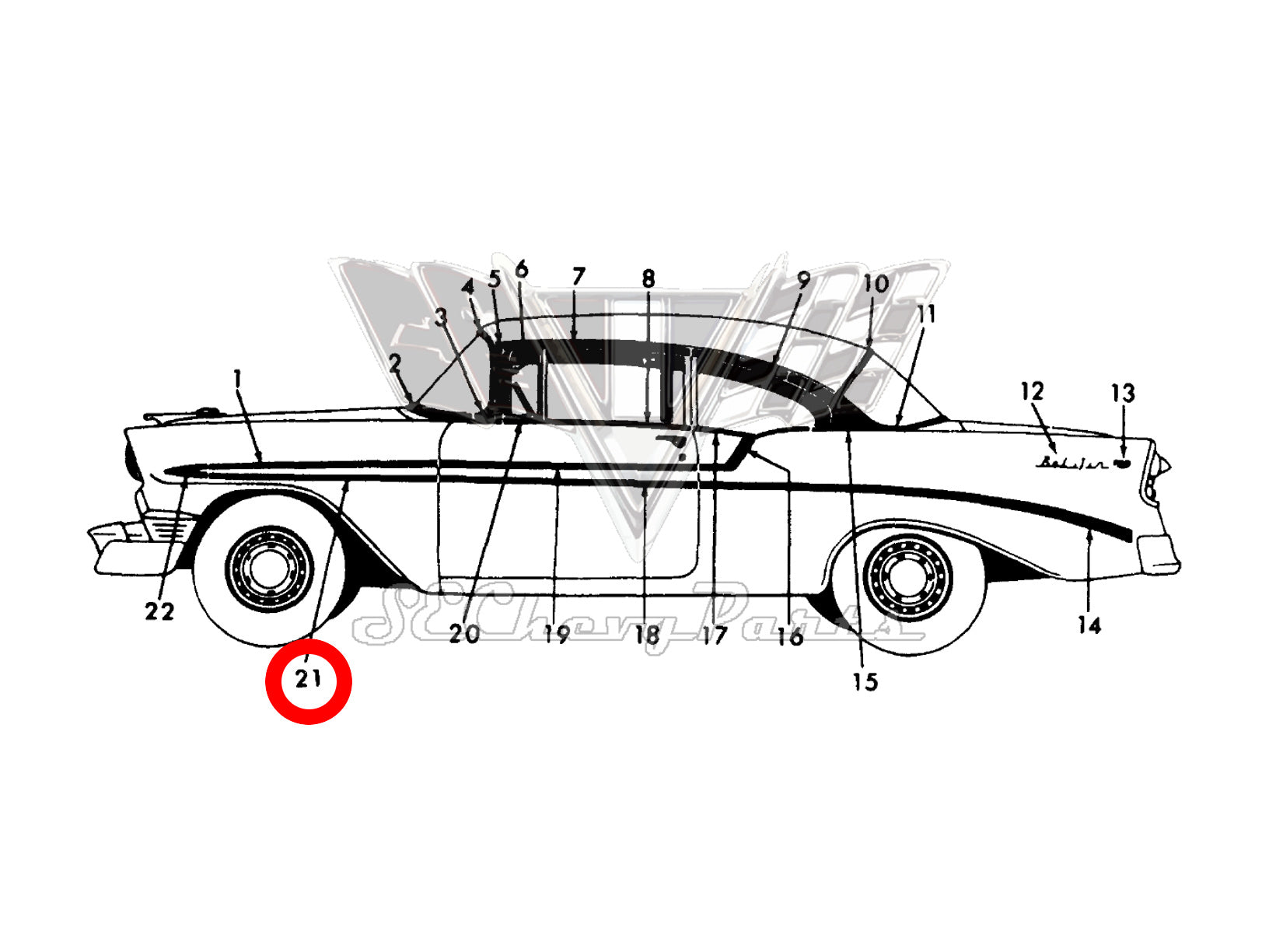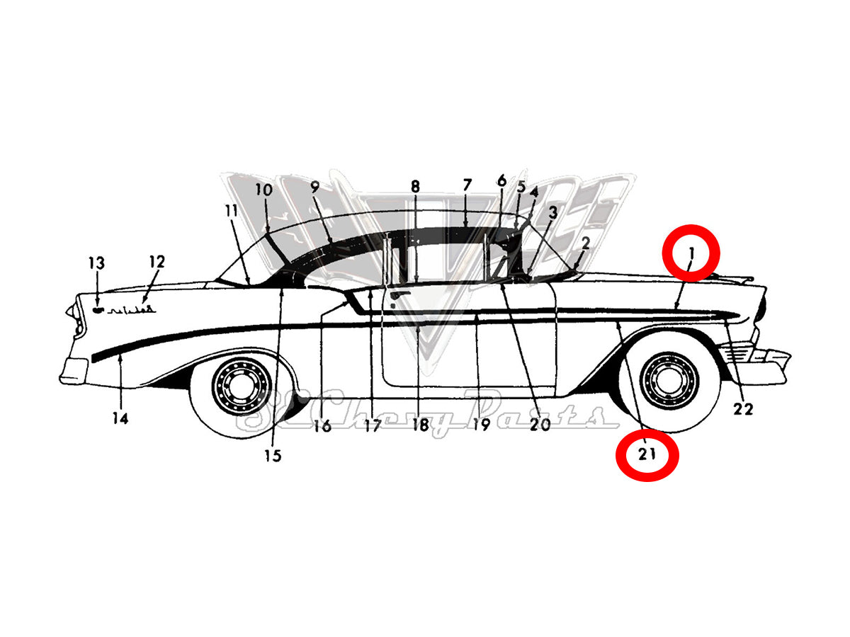 1956 Chevy Bel Air NOS RIGHT LOWER LEFT UPPER Fender Molding #3759413