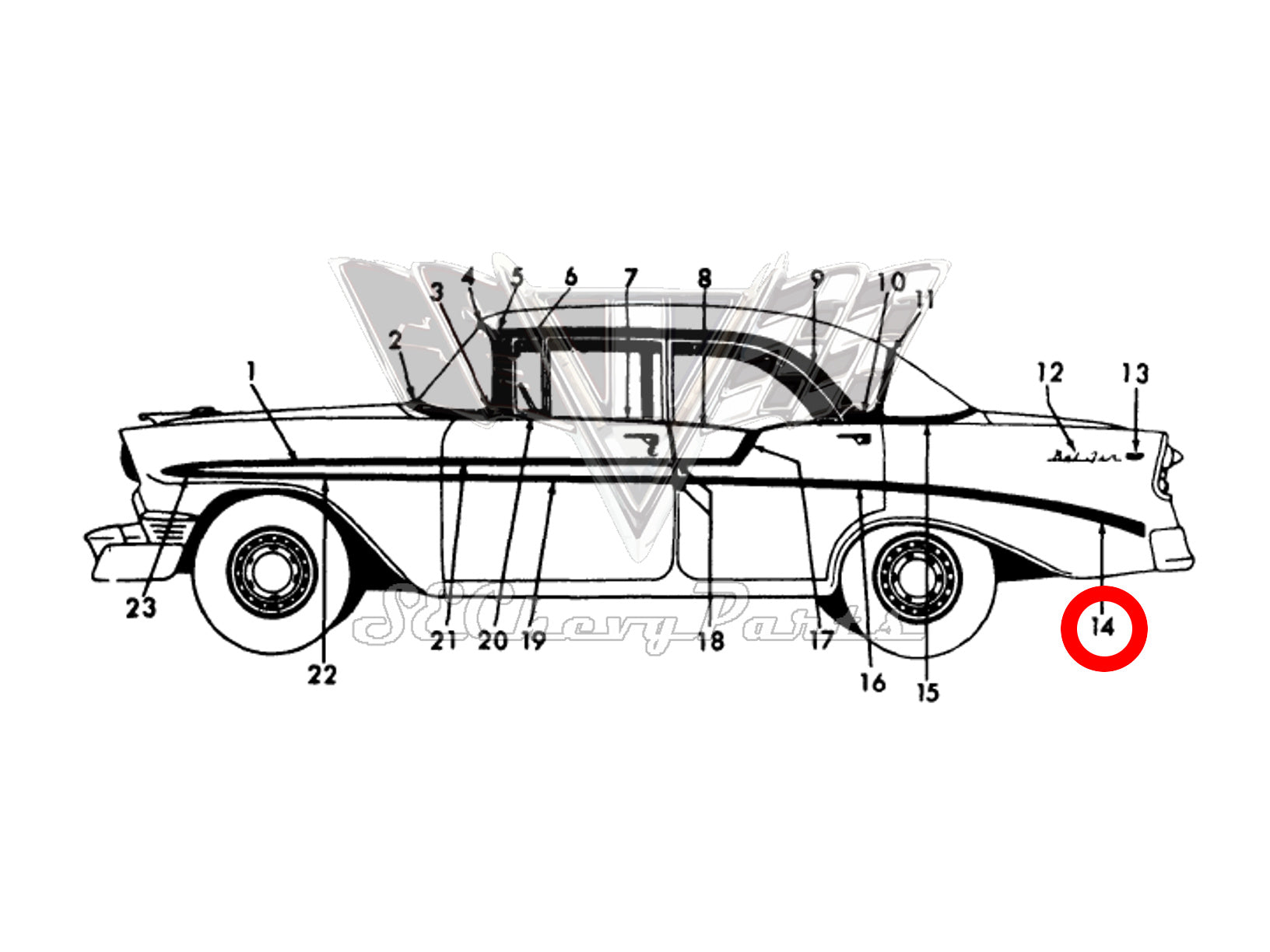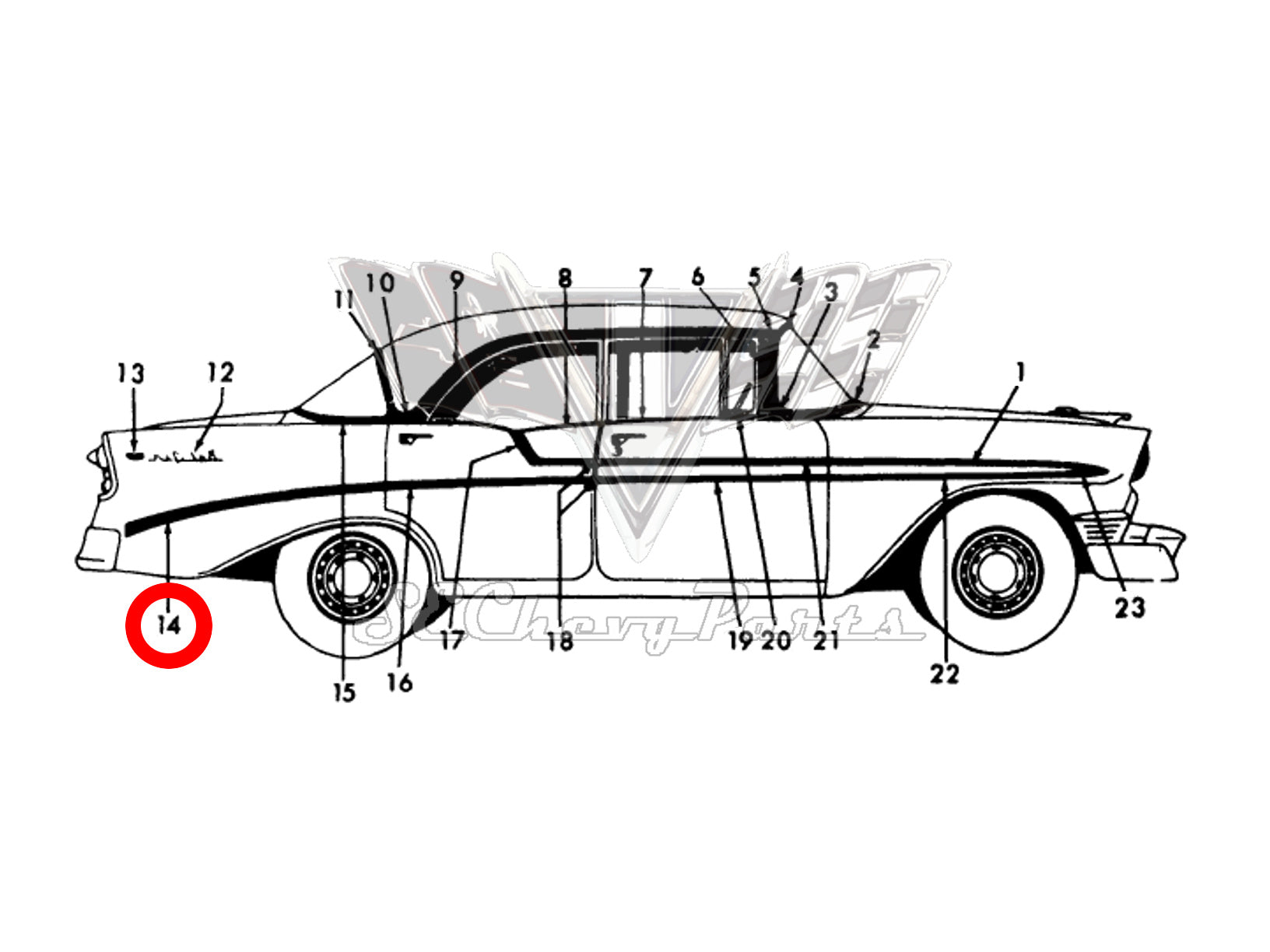1956 Chevy Bel Air 2 Door NOS LEFT Long Quarter Stainless Trim Molding