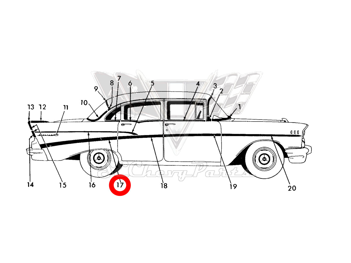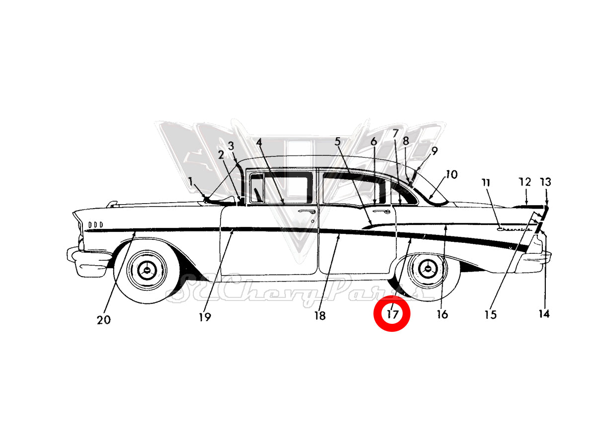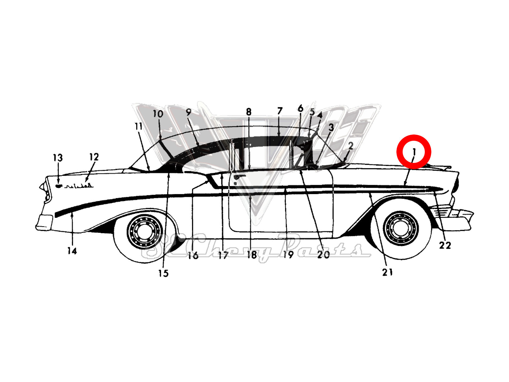 1956 Chevy 210/150 2-Door Molding LEFT NOS 3759461