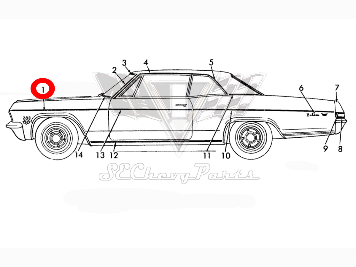 1965 Chevy Bel Air Fender Molding Trim NOS