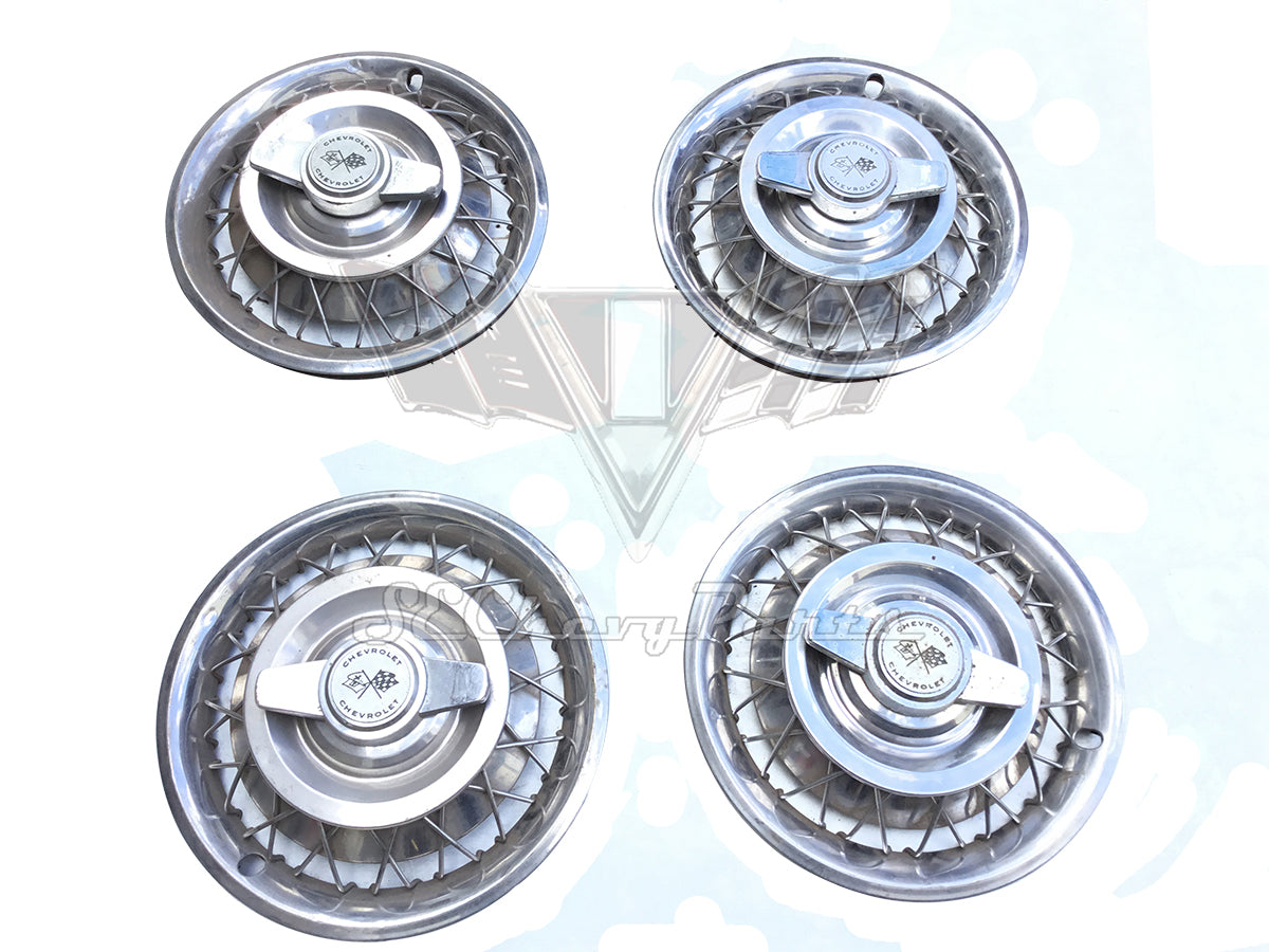 1962-1963 Chevy Corvair 14" Wire Wheel w/Spinner Hubcap SET USED