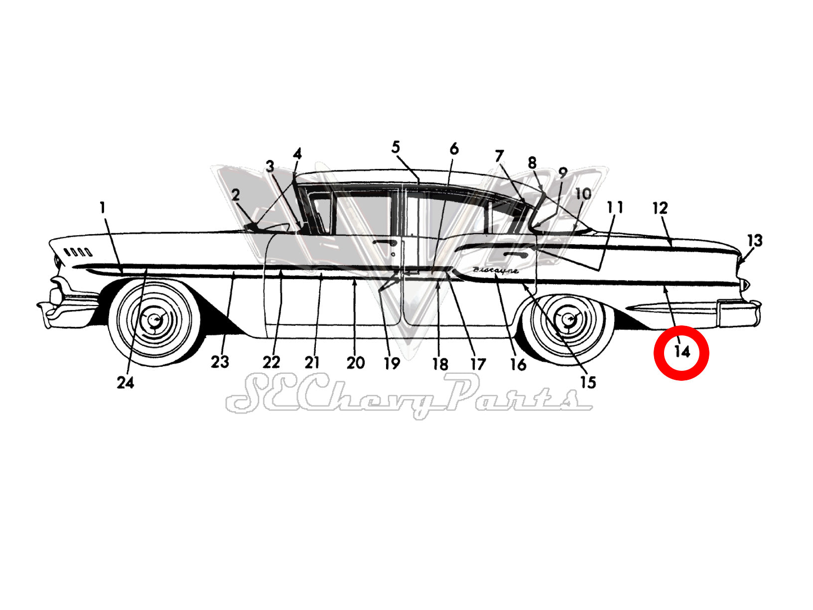 1958 Chevy 4 Door Delray Left Rear Door Rear Trim Molding RESTORED