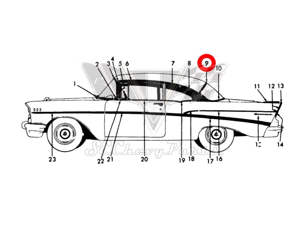 1959 Chevy El Camino Side/Lower Rear Backglass Reveal Molding USED