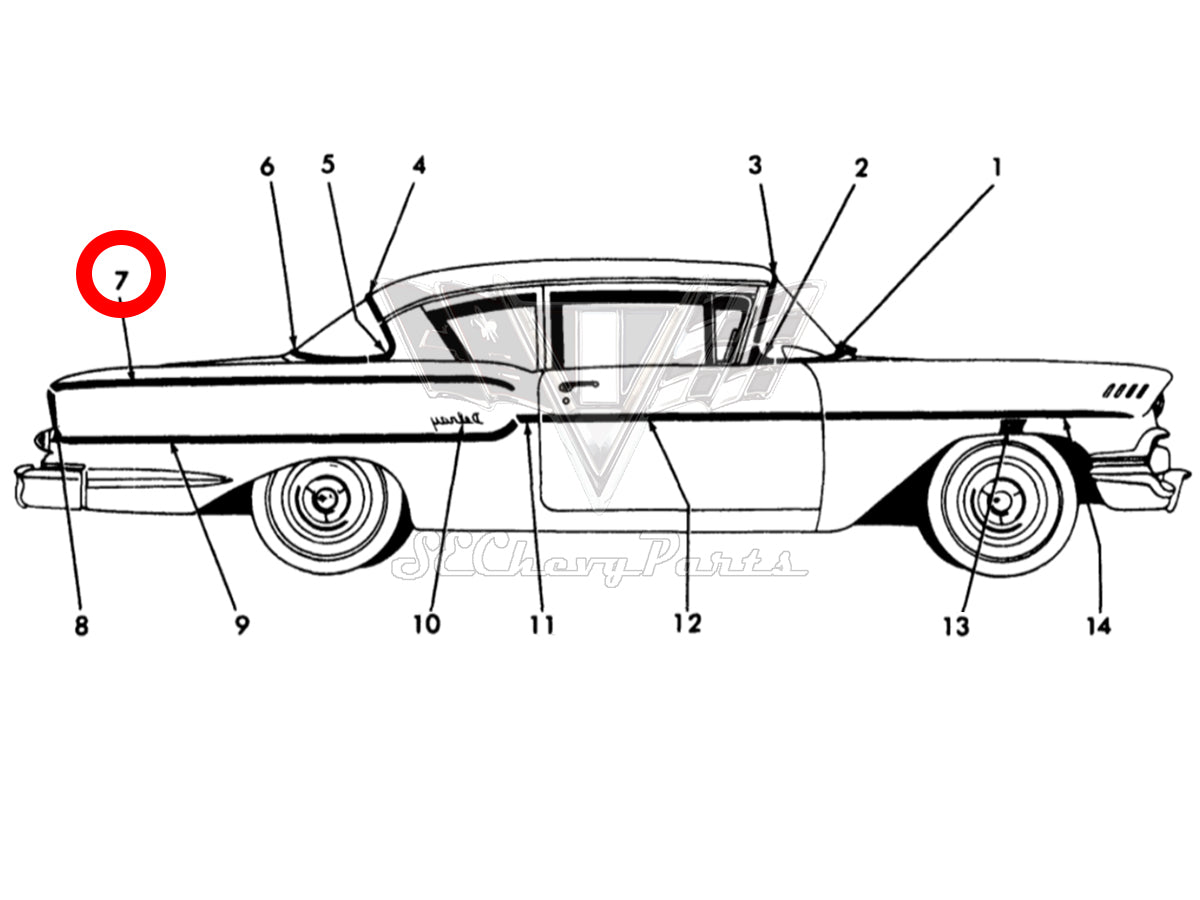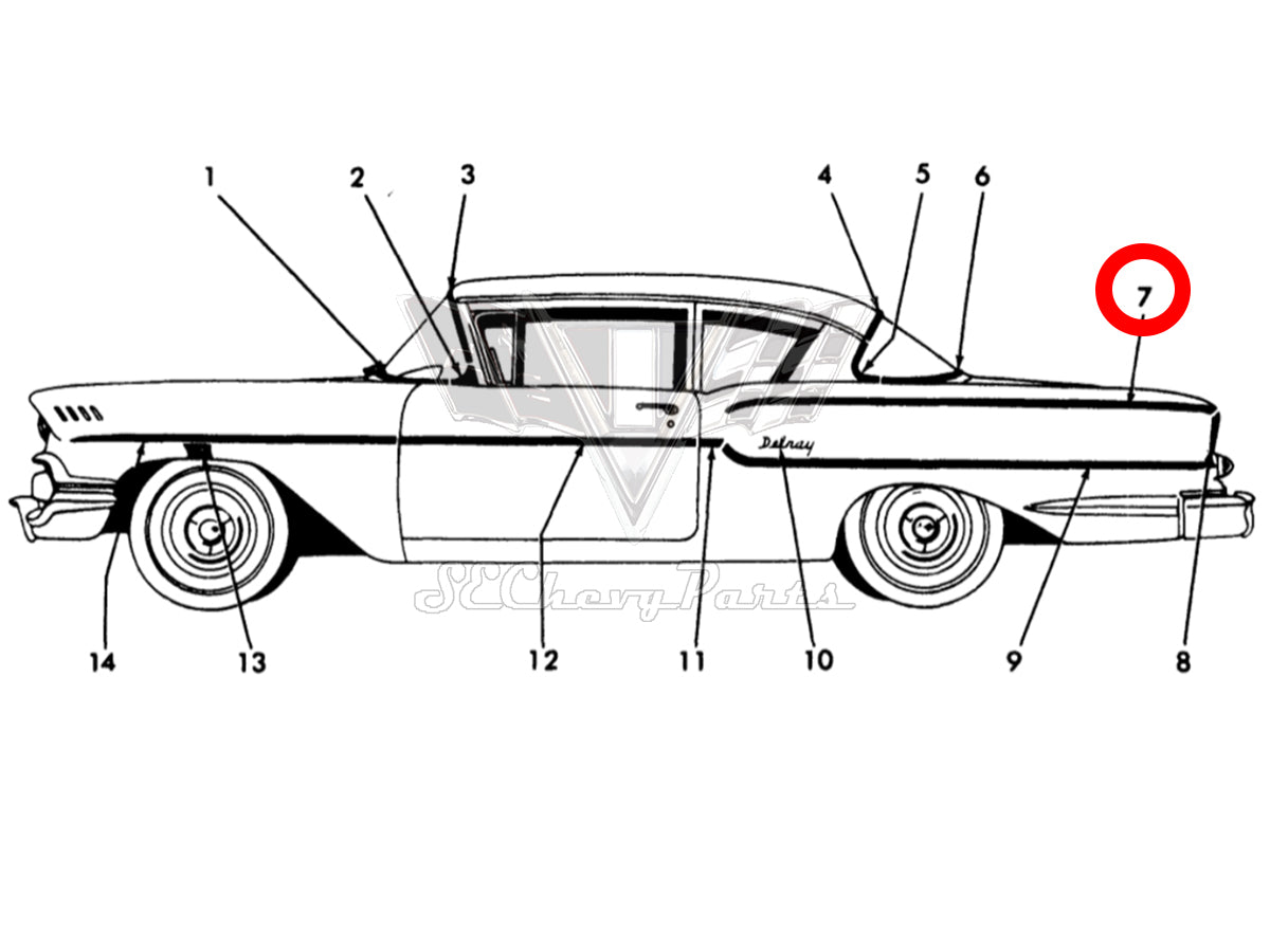 1958 Chevy 2-Door Biscayne/Delray Upper Rear Quarter Molding LEFT SHOW