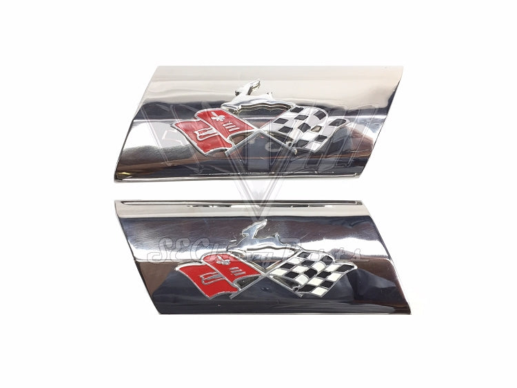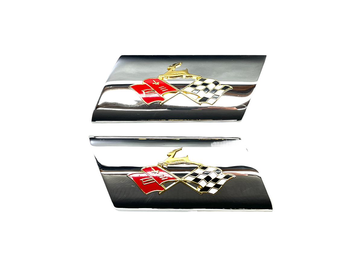 1959 Chevy Impala Side Door Quarter Flag Emblem Trim Molding PAIR