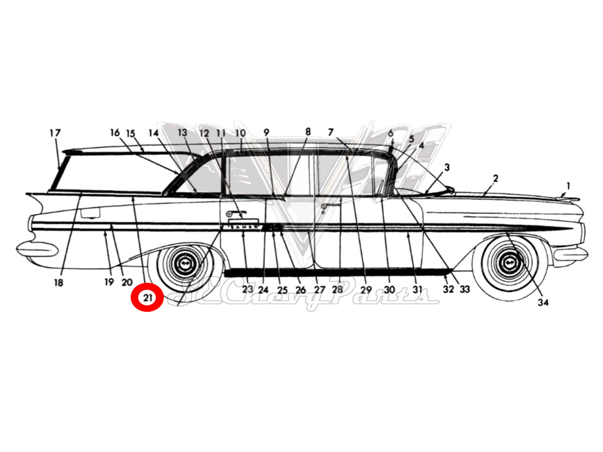 1959 Chevy Parkwood Wagon Front Fender Script PAIR