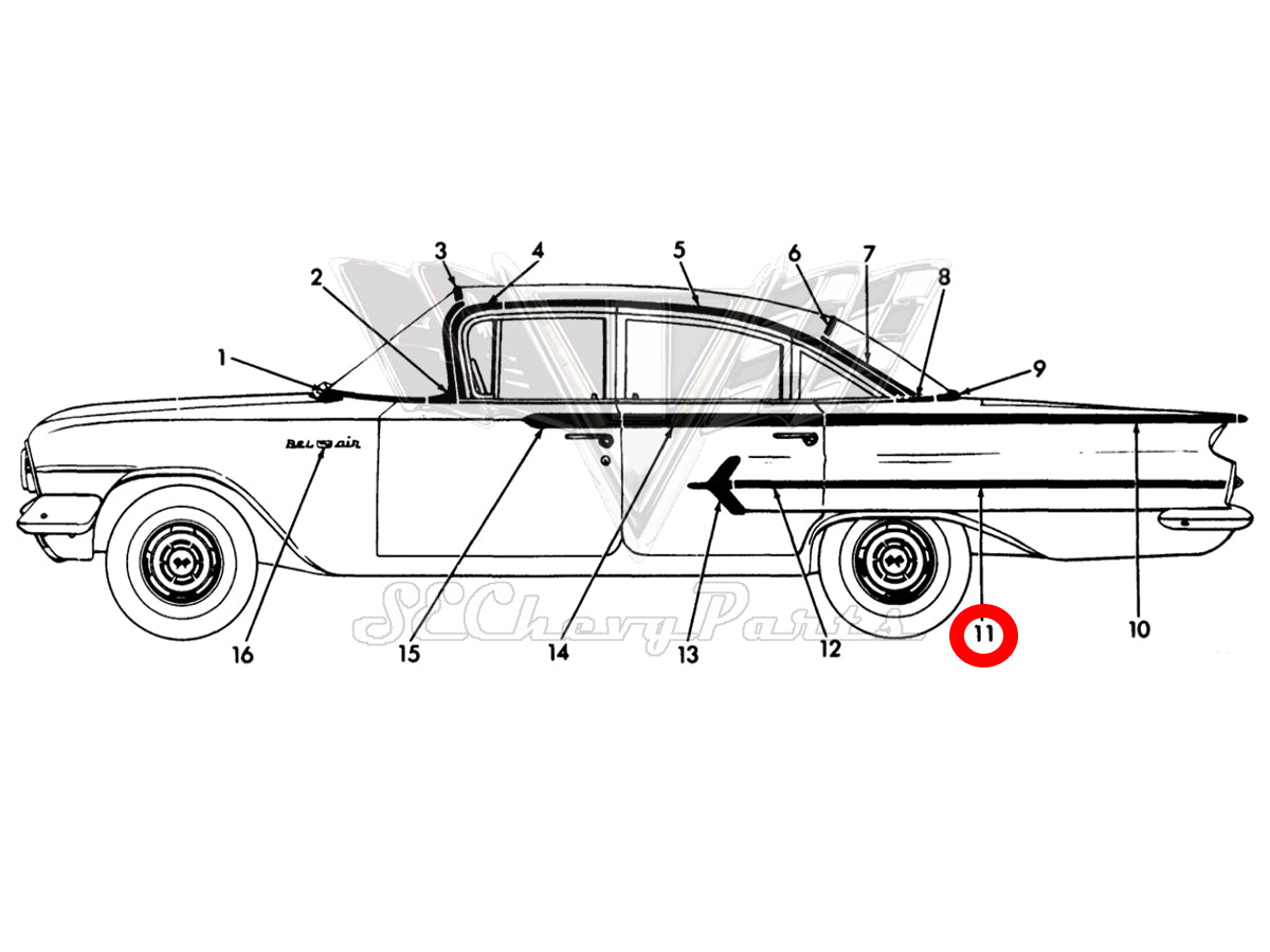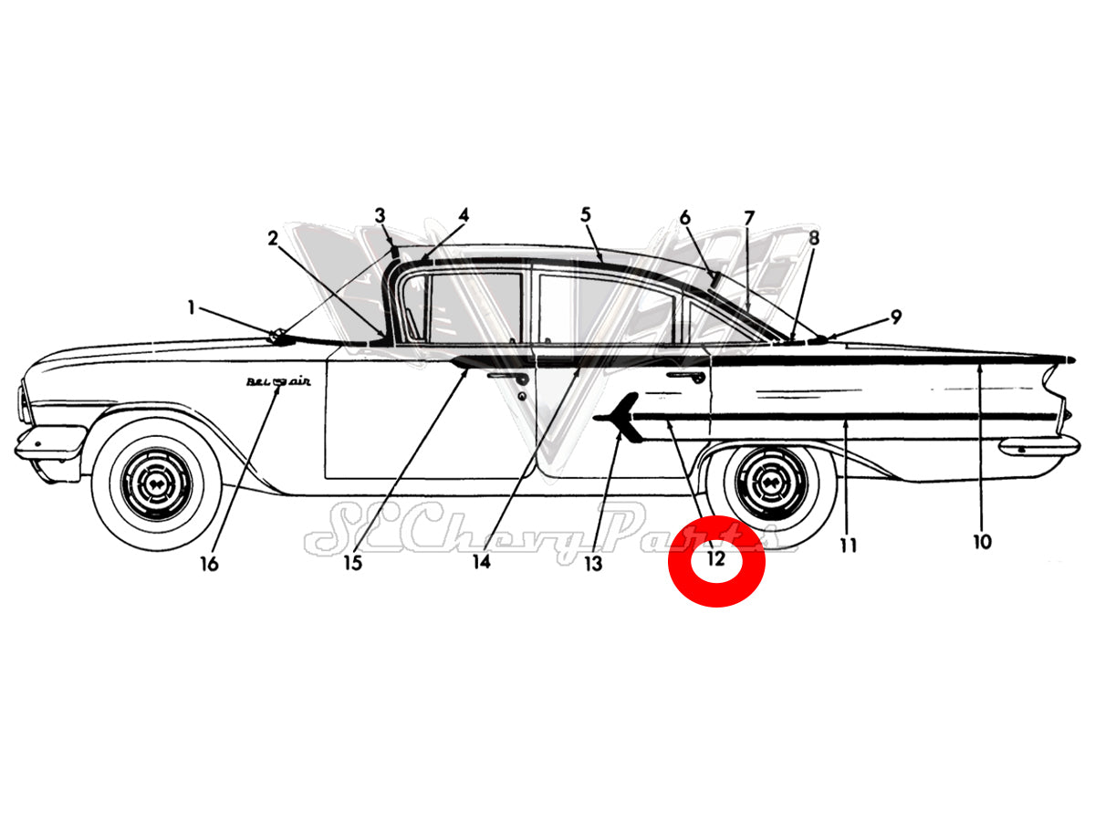 1960 Chevy Bel Air 4-Door Rear Quarter Molding Trim