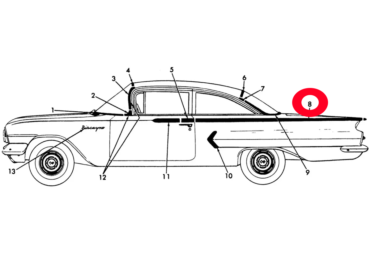 1960 Chevy Biscayne Sedan LEFT Rear Tail Fin Corner Molding SHOW OEM