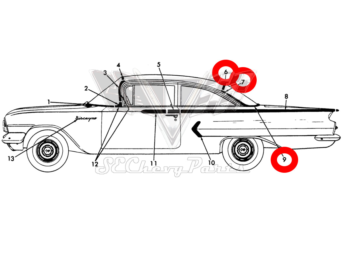 1960 Chevy Biscayne 2 Door Side Trim Molding Spear SHOW