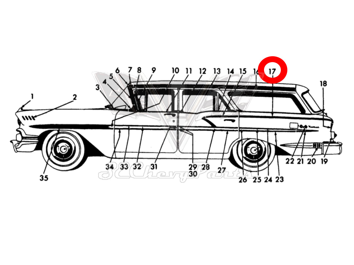 1958 Chevy 4 Door Biscayne Delray Left Rear Door Upper Quarter Trim Molding RESTORED