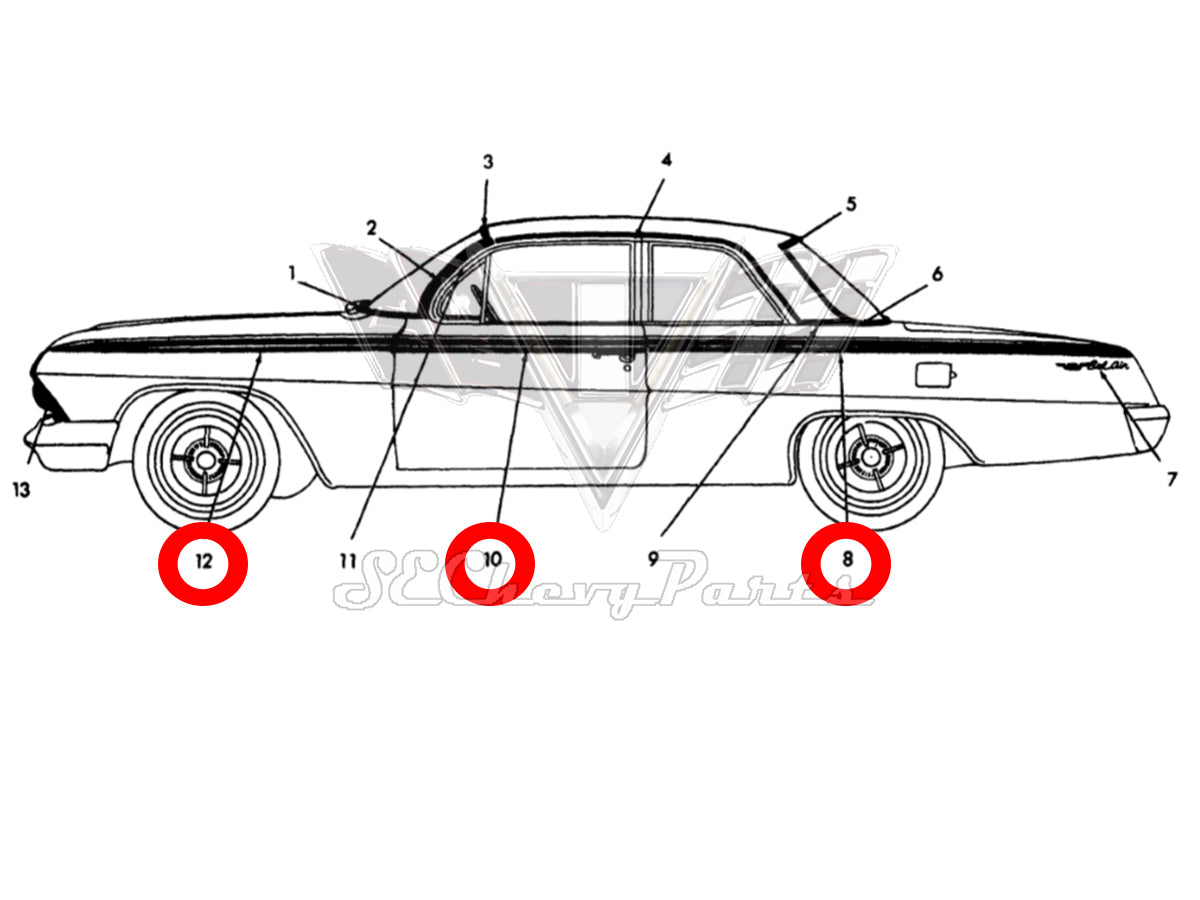 1962 Chevy Bel Air 2-Door Hardtop Side Molding Set Complete USED