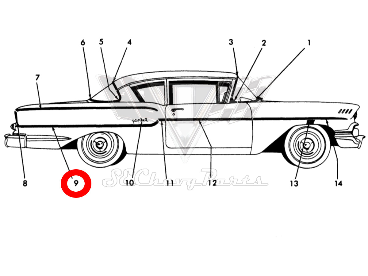 1958 Chevy Biscayne Sedan Quarter Panel Scripts PAIR USED