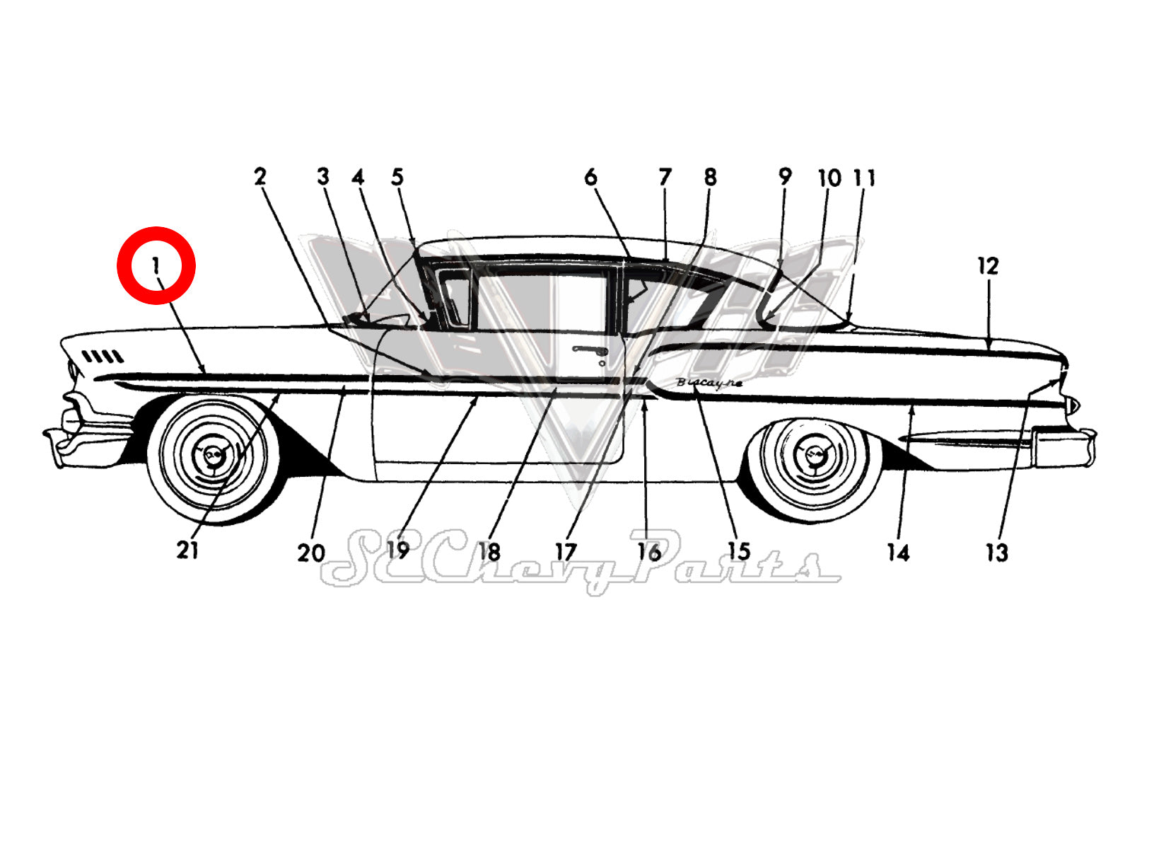 1958-1964 Moldings, Clips, & Emblems