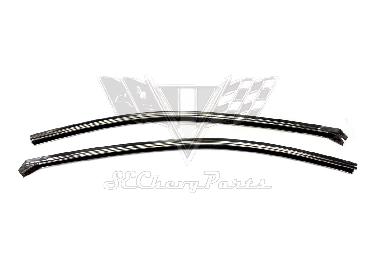 1959-1960 Chevy Impala 2-Door Hardtop Quarter Window Lower Glass Frames PAIR REPLATED