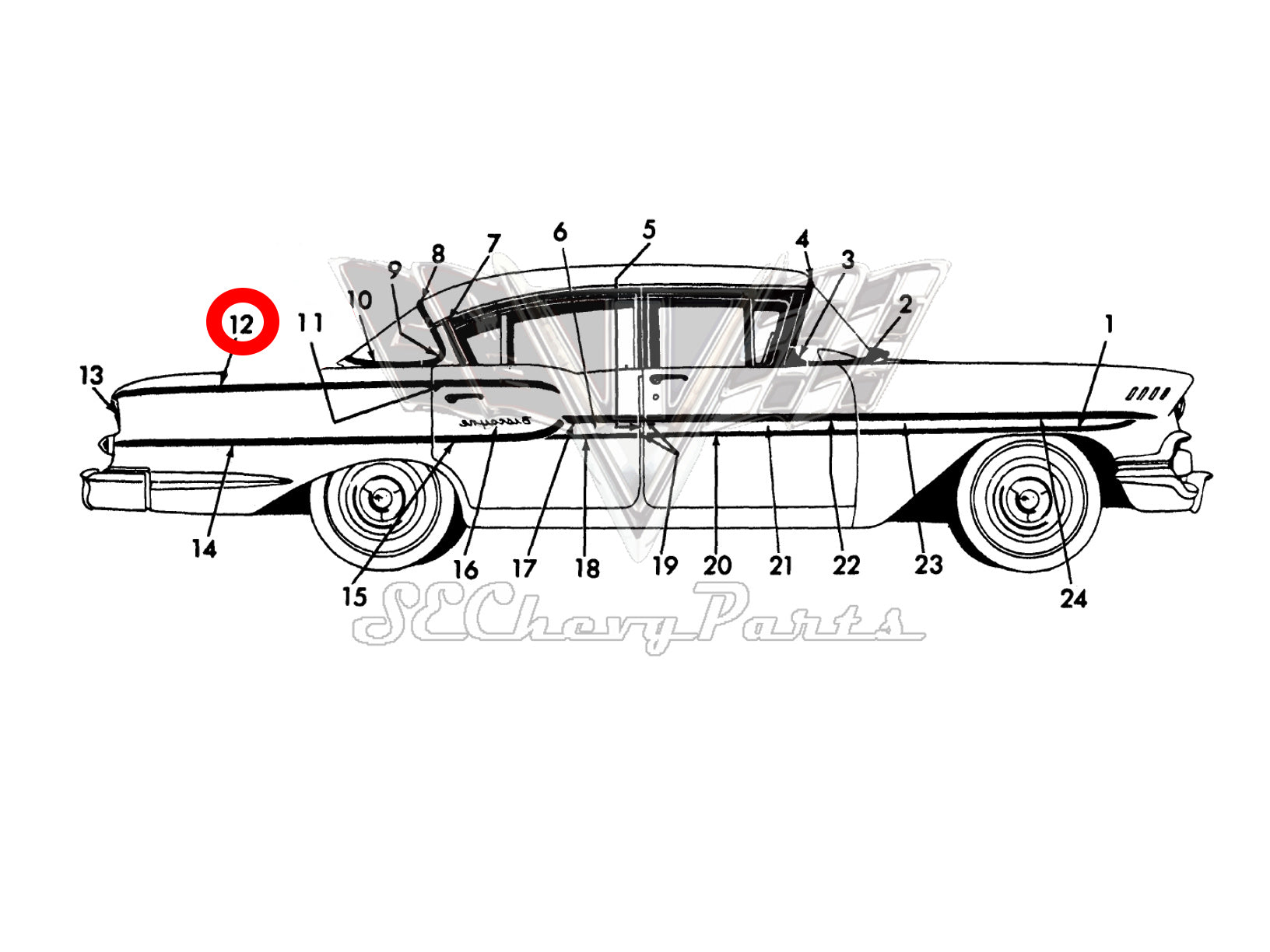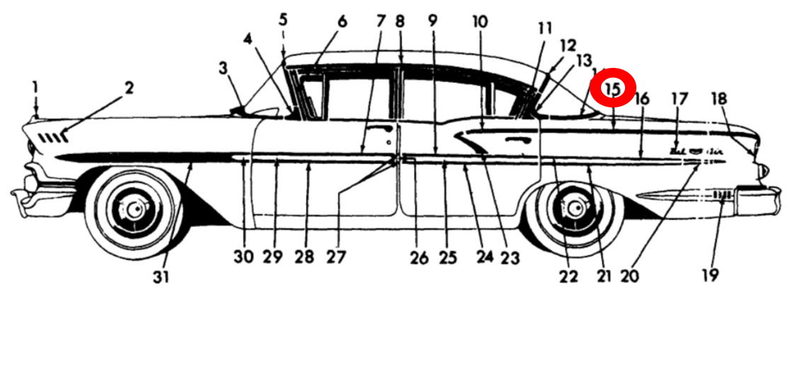 1958 Chevy Biscayne 2-Door Front Door Upper Molding LEFT 3759479