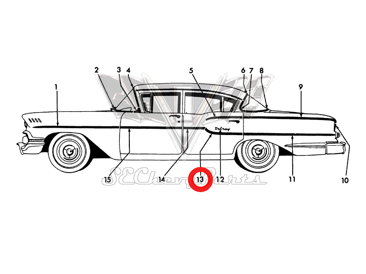 1958 Chevy 4 Door Delray Left Rear Door Rear Trim Molding RESTORED