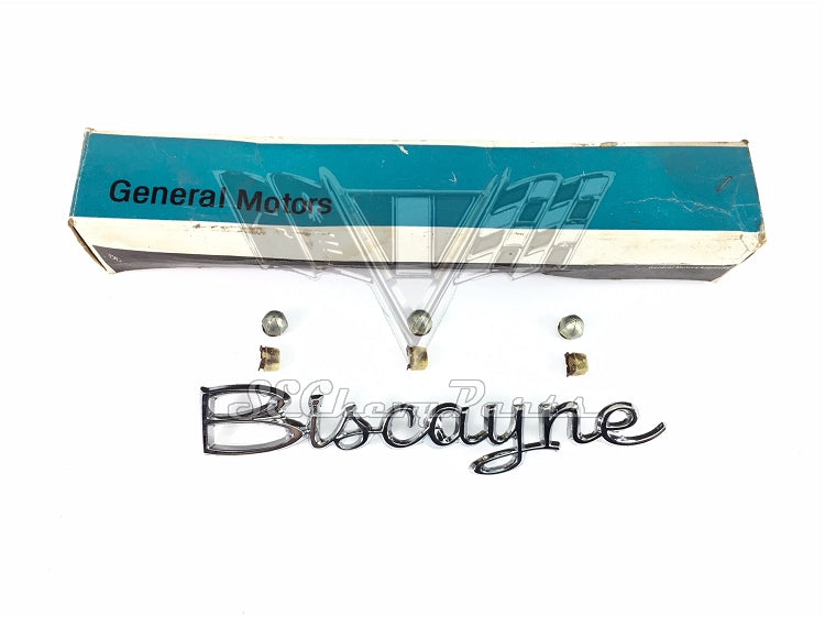 1965 Chevy Biscayne NOS Rear Quarter Script Emblem GM #3870860