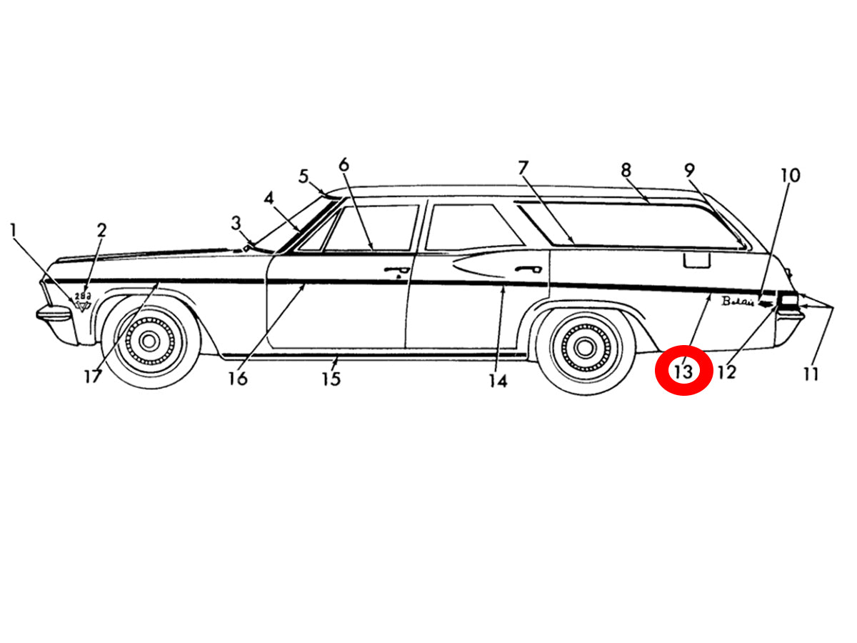 1965 Chevy Bel Air Wagon Rear Quarter Molding Trim NOS 3870843