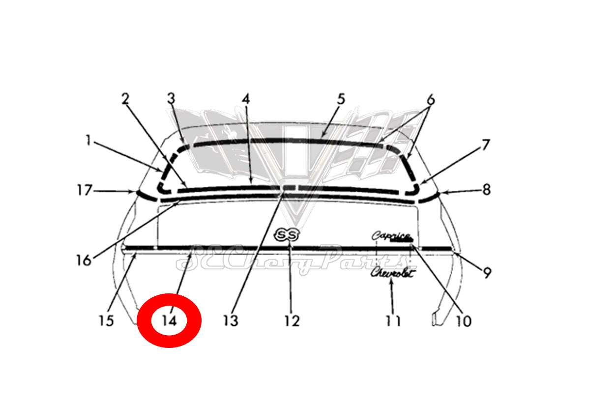1969 Chevy Impala Caprice Trunk Decklid Molding NOS 8700984