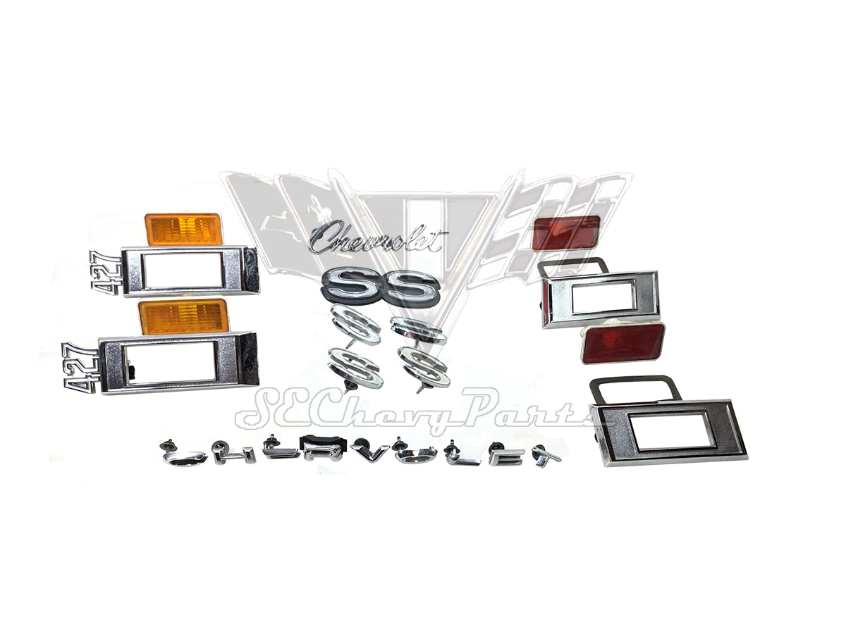 1969 Chevy Impala Hood Fender Quarter Emblem Script Badge SET