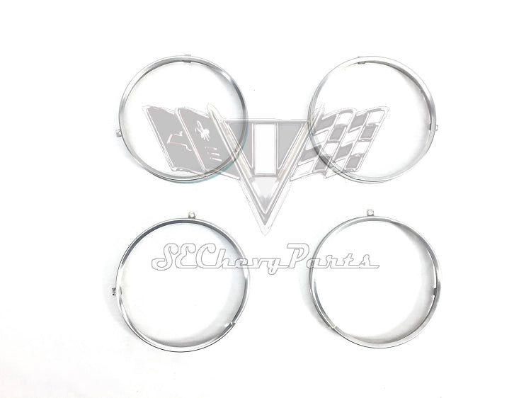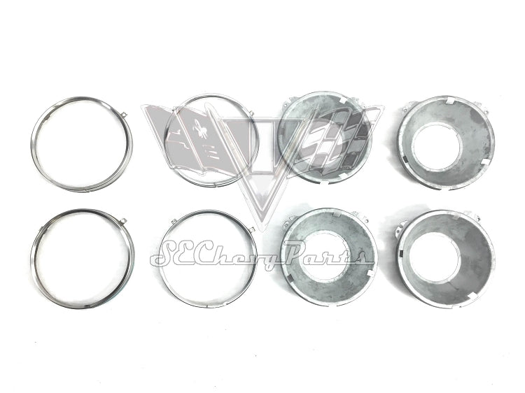 1958-1966 Chevy 5 3/4 in. Headlight Bucket & Rings, Set 4