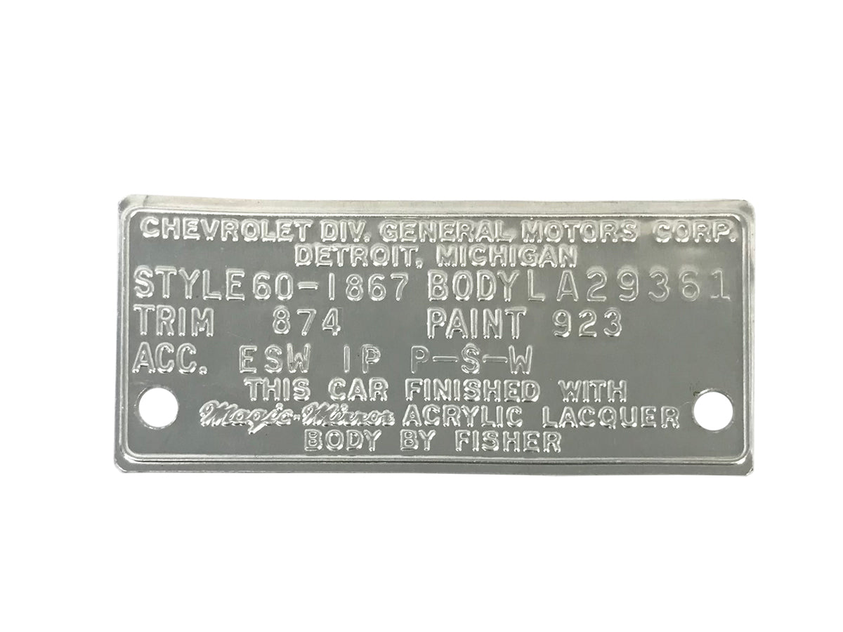 1958-1964 Chevrolet New Cowl Tag Stamping Service