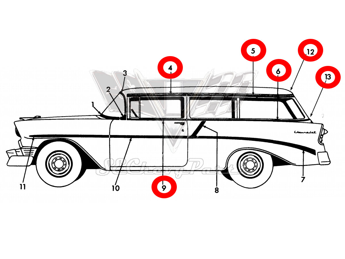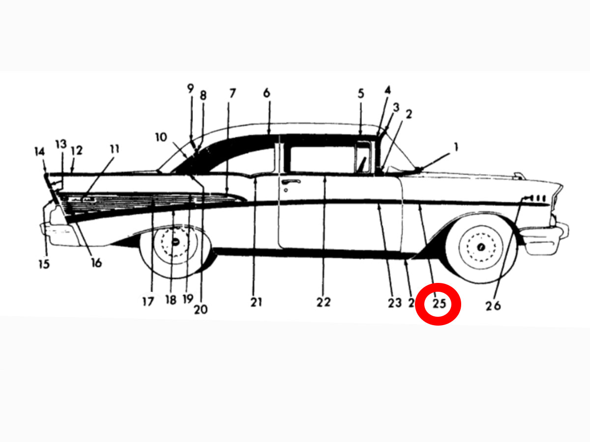1957 Chevy Bel Air Fender Molding Trim RIGHT SHOW