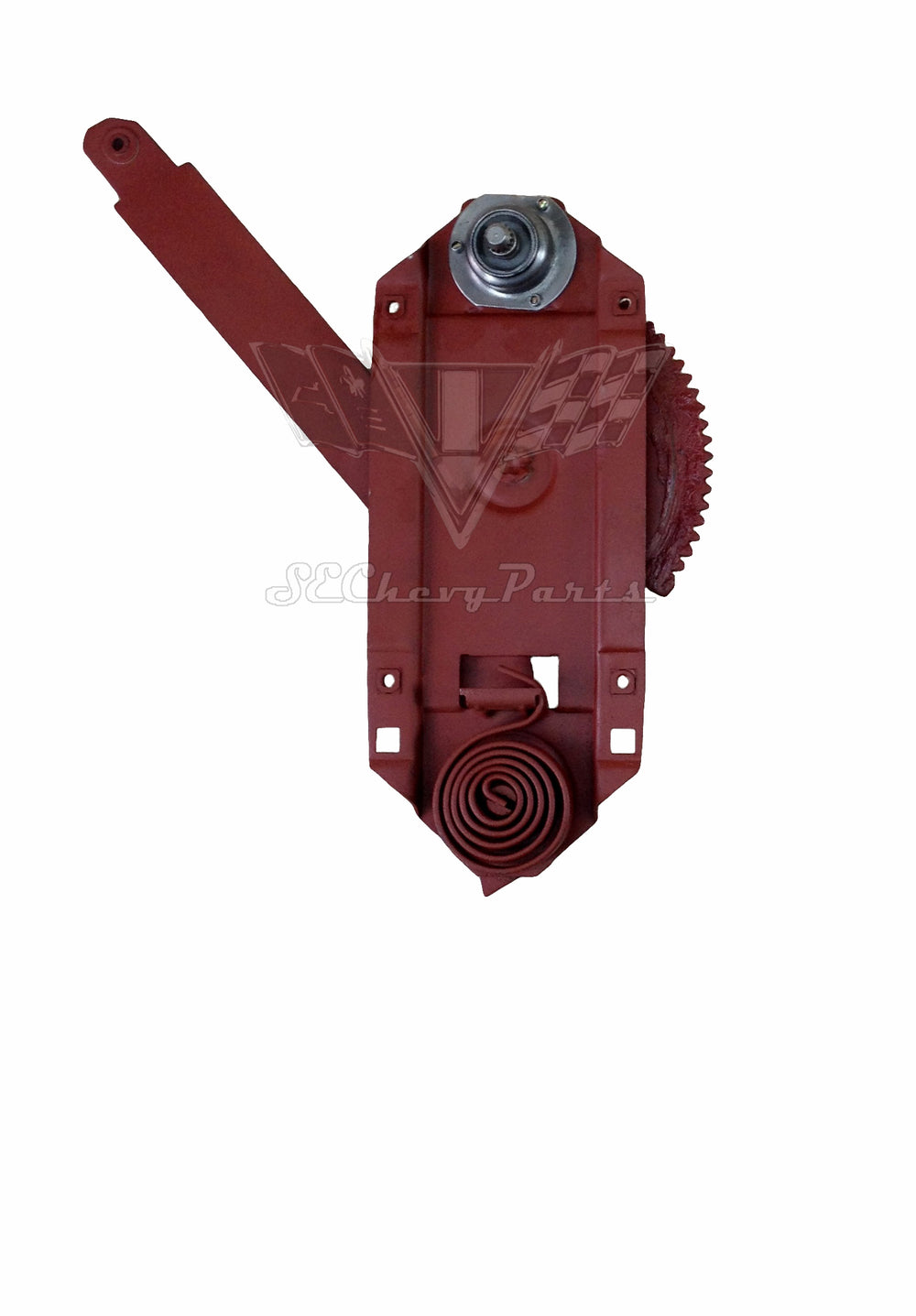 This original 1955-1956-1957 Chevrolet Hardtop left/ driver's side quarter window regulator has been fully restored. We replace any gears or nylon rollers that are broken or worn down. Often the springs are broken or the main rivet is loose causing the regulator to fail to raise the window all the way up. In this case, we install new springs or rivets so as to ensure that the regulator will work properly. When we get done with them they look and function like new. Passenger's and driver's side sold separately.