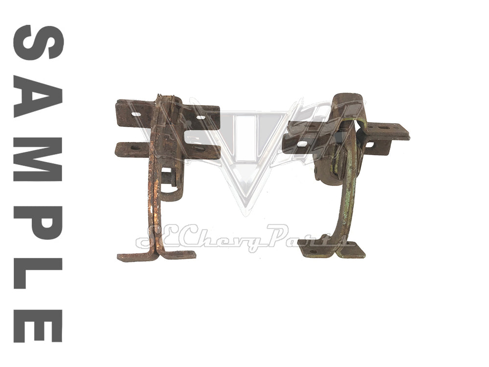 This pair of 1955-1957 Chevy Bel Air Wagon Upper Lift Gate Hinges are used GM parts. They will need to be restored. The images are just an example. Please ask for specific photos of the pair we will send you.