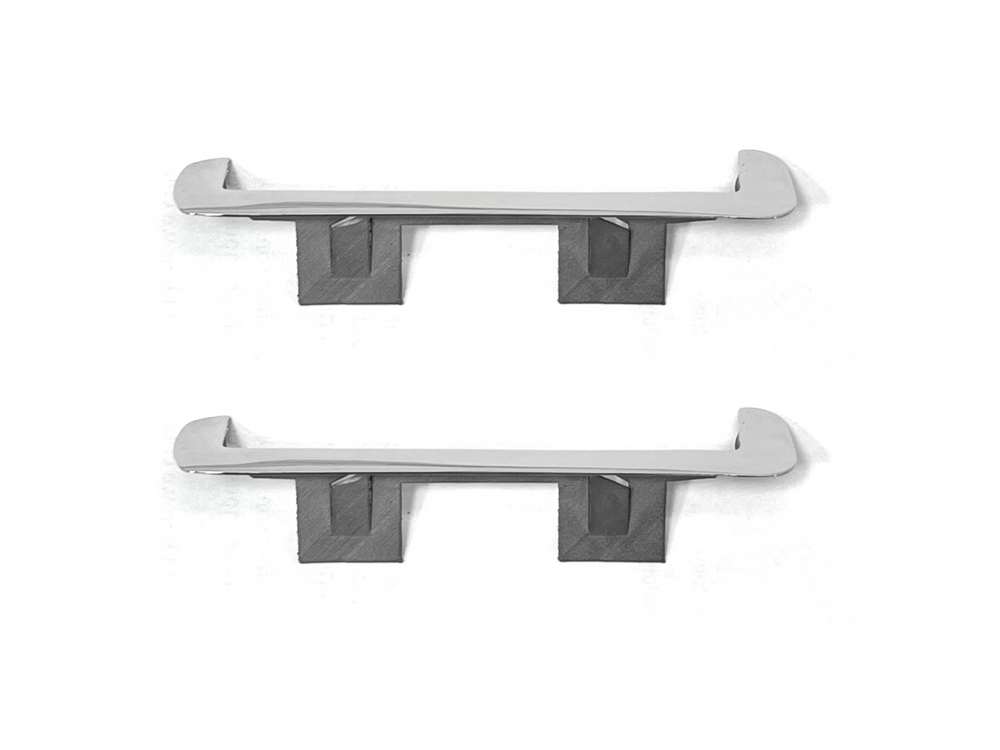 This pair of 1955-1957 Chevy Nomad & Wagon Tailgate Hinge Trim Molding are a reproduction of the original GM parts.  These are polished stainless and not in like the original parts so they will last longer and have a better shine.  Snaps on on like the originals.