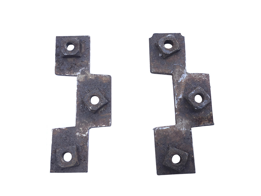 This set of 1955-1958 Chevy Bel Air Front Door Hinge Plates is an original used GM part. These are inside the door and are what the door hinge mounts to.