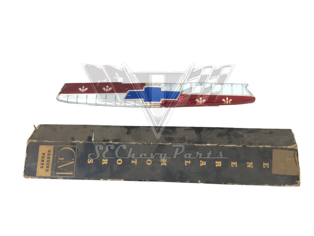 This 1955 Chevy Bel Air V8 Hood Badge Emblem Insert NOS is an original GM part.