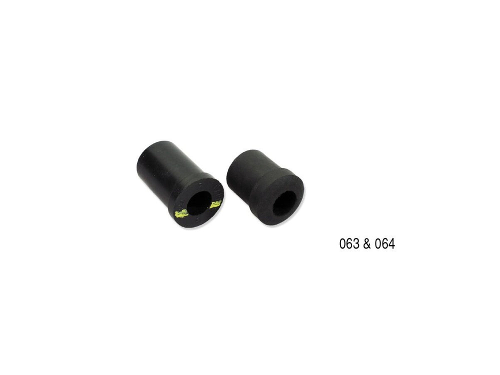 Leaf Spring Shackle Upper Rubber Bushing will work on any 1956-1957 Chevy model. 1956-1957 use 4 bushings at the upper shackle mounting point and 4 #064 bushings at the lower shackle mounting point. Sold each.