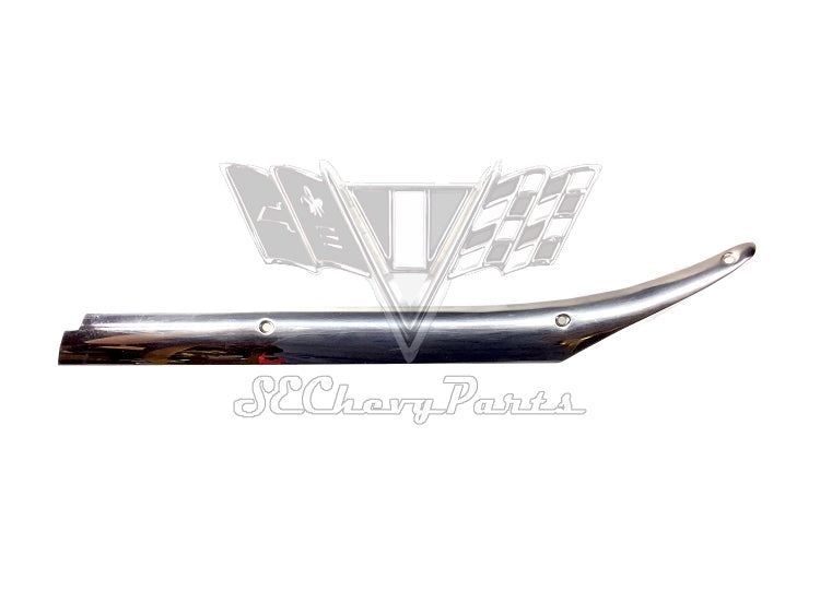 This 1958 Chevy Impala 2-Door Hardtop LEFT Rear Quarter Glass Interior Trim Molding OEM is an original used stainless GM part. The stainless piece is in good used condition with minor scratches and dings. For an additional cost we can polish the pieces so that they are in show condition.