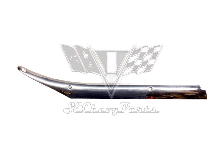 This 1958 Chevy Impala 2-Door Hardtop RIGHT/PASSENGER'S SIDE Rear Quarter Glass Interior Trim Molding OEM is an original used stainless GM part. The stainless piece is in good used condition with minor scratches and dings. For an additional cost we can polish the pieces so that they are in show condition.