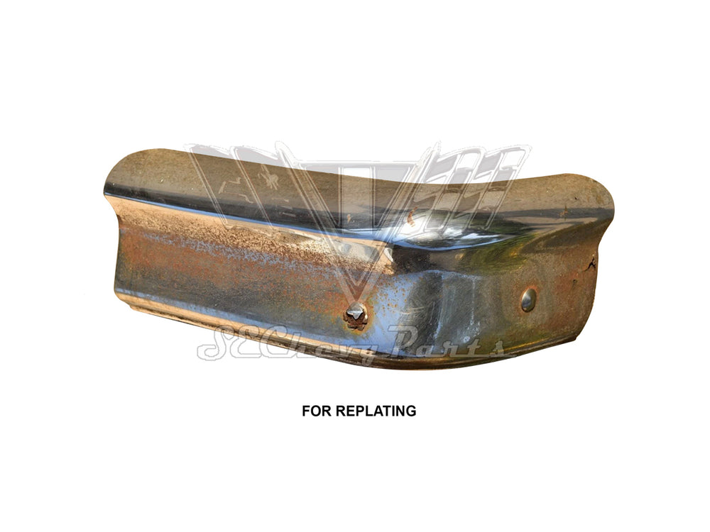 This 1958 Chevy Impala RIGHT/PASSENGER'S SIDE Rear Bumper is an original used bumper piece that is intended to be re-chromed. There may be a few dings and dents in the bumper but any good chrome shop should be able to easily fix it.