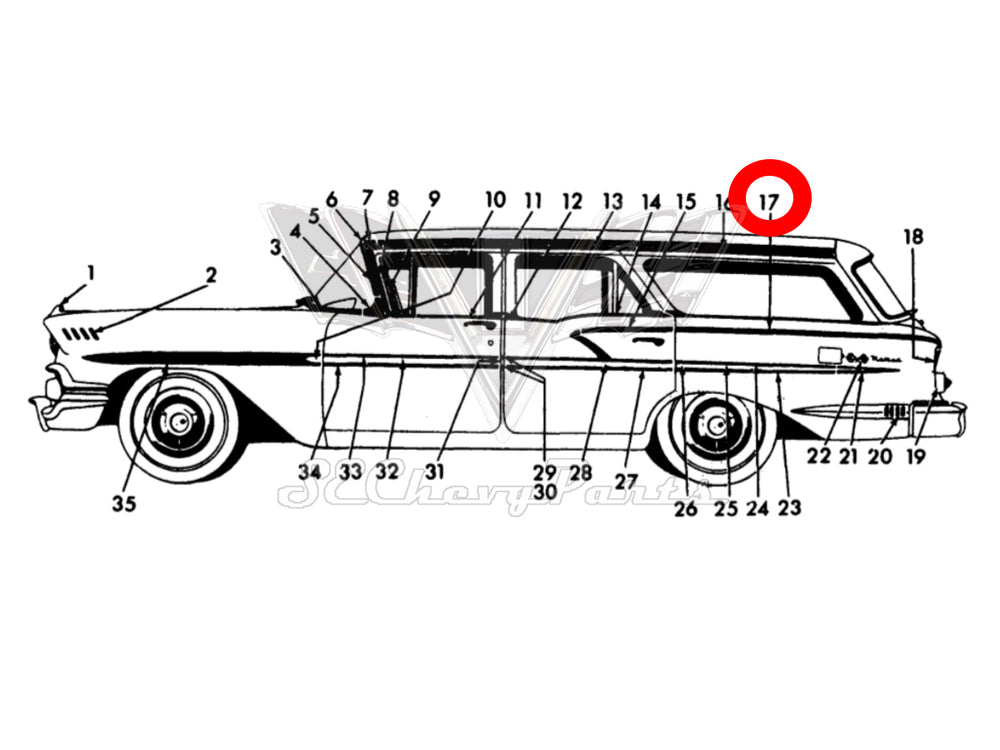 This 1958 Chevy 4-Door Wagon Rear Quarter Upper Fin Molding Trim is an original GM part #3759693. Comes with original clips. Some of the moldings are still in the NOS wrapper. Expect some shelfware. They should be good enough to put on a driver car but I have not inspected since they are in the bag.