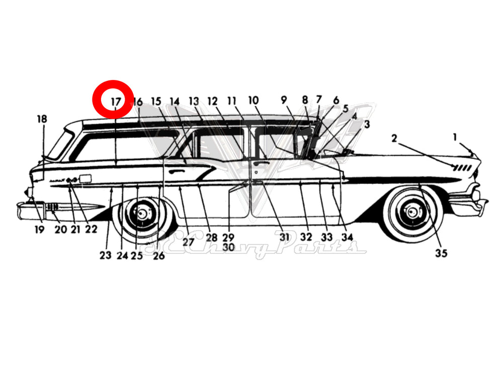 This 1958 Chevy Nomad Rear Quarter Upper Fin Molding Trim is an original GM part #3759693. Comes with original clips. Some of the moldings are still in the NOS wrapper. Expect some shelfware. They should be good enough to put on a driver car but I have not inspected since they are in the bag.