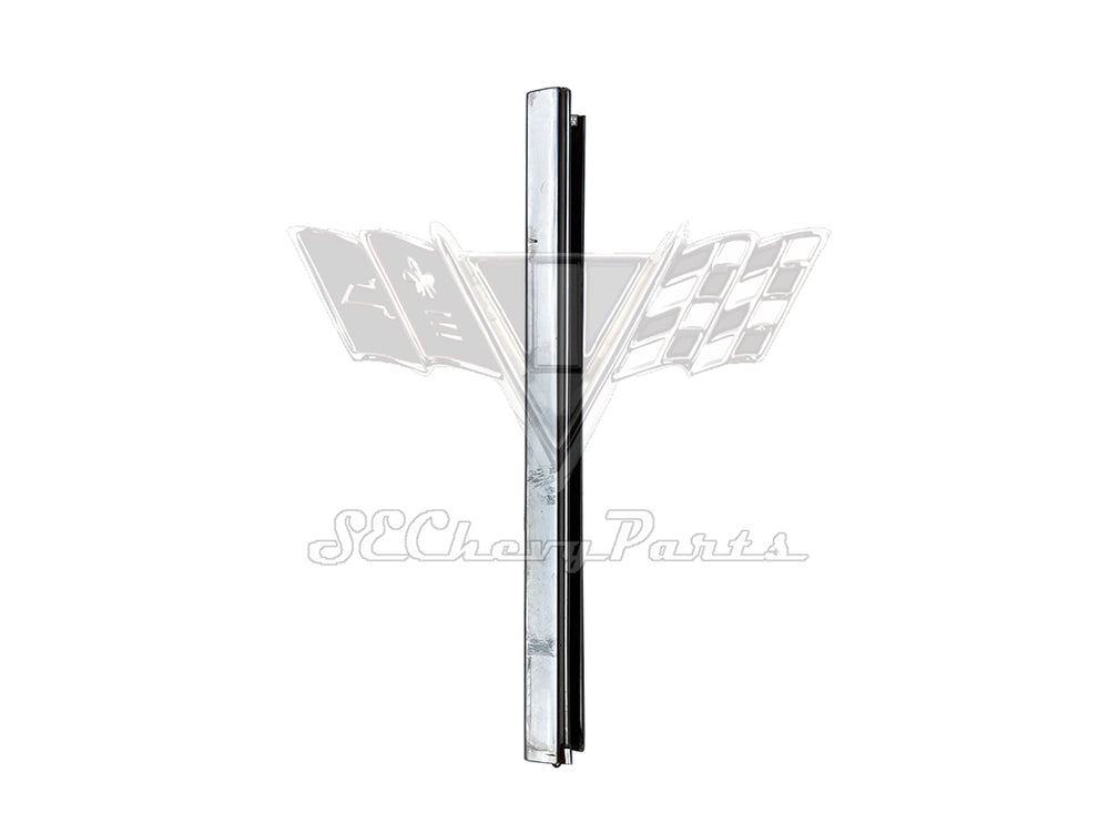 This 1959-1960 Chevy Wagon Tailgate Glass Upper Vertical Channel is an original used GM part. The channel attaches to the upper portion of the rear glass and guides the glass. This does NOT attach to the tailgate but attaches to the rear post. It does not fit a Nomad.