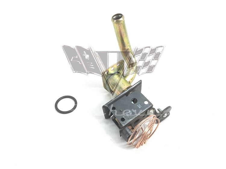 This original 1959-1960 Chevrolet or Pontiac with Factory AC or Non-AC heater control valve is an NOS GM part. This also fits 1961-1962 Chevy Factory AC vehicles.  The valve attaches to the heater core and controls the temperature for the passenger compartment. The assembly includes the rubber "O" ring.