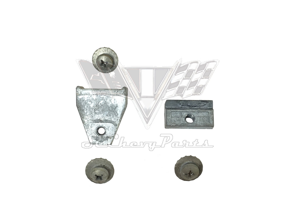 This 1959-1964 Chevy Impala 4-Door Hardtop Rear Door Window Guide Wedge Stops is an original used GM part #4786093 and 4786096. The wedges attach to the inside of the door and guide/protect the window as they role up and down. Includes hardware. The left and right are interchangeable.