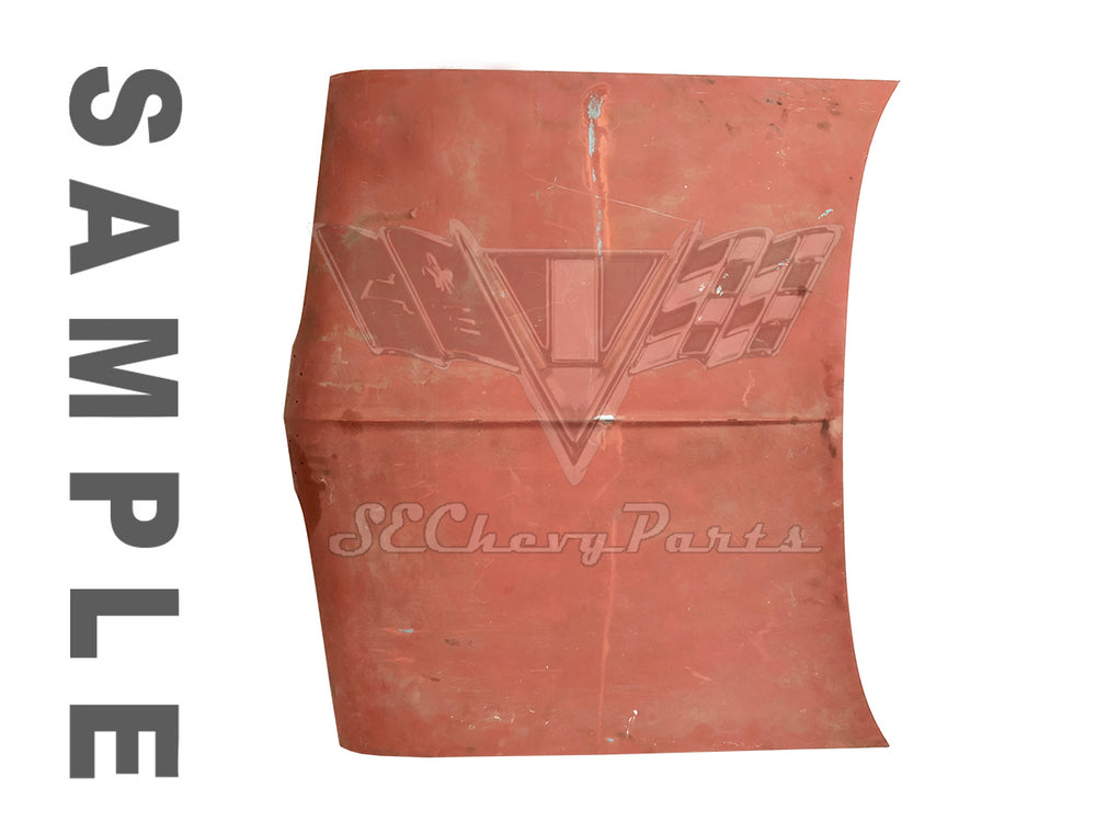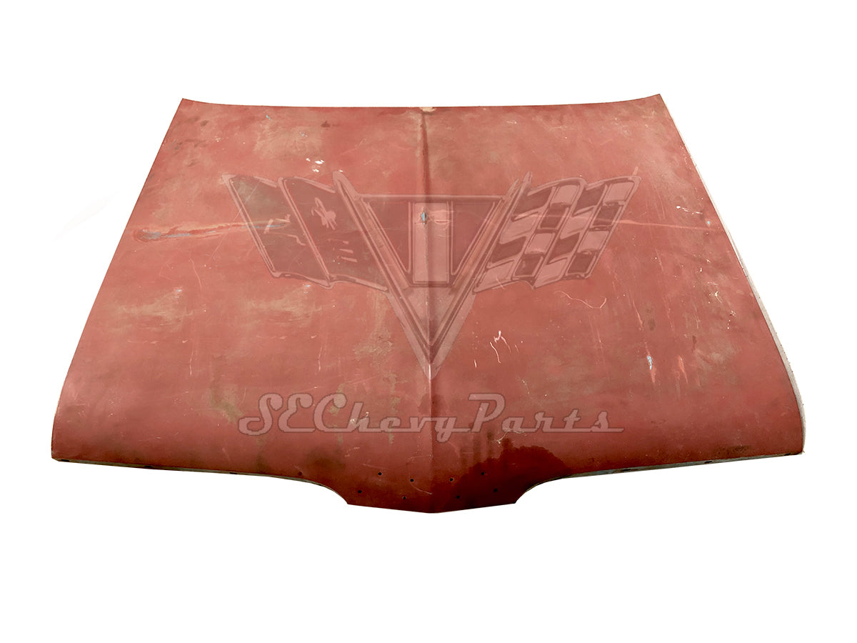 This 1959 Chevy Impala Hood is an original GM used part. The hood photographed is just a sample. Please contact the shop to get specific photos of the hood you will purchase. Fits all models.