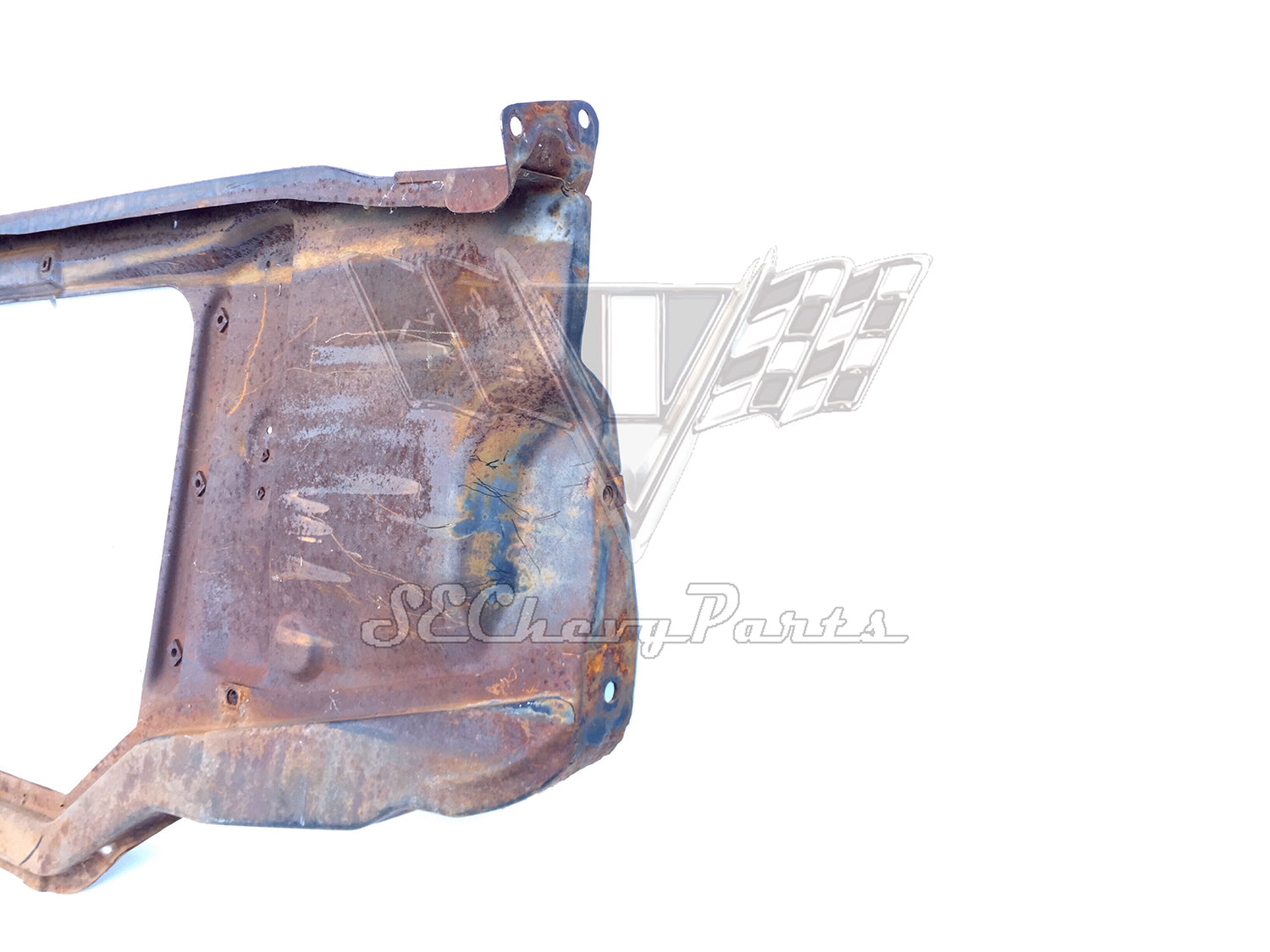 This 1959 Chevy Impala Radiator Core Support is an original GM part that is used. The bottoms show little to know signs of deterioration. The part in the photo is just an example. Your core support will not look exactly like the photograph, this is a sample photo prior to being media blasted and primed black.