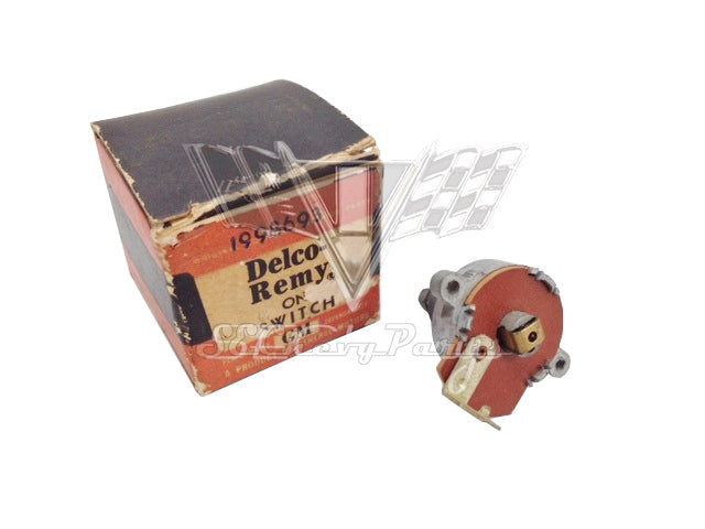 This is an original Delco-Remy NOS 1959 Chevrolet full-size passenger car single speed with no pump wiper switch (#1998693).  These one speed switches have never been put on a car! Beautiful and ready for installation.  Switch comes in the original GM box.