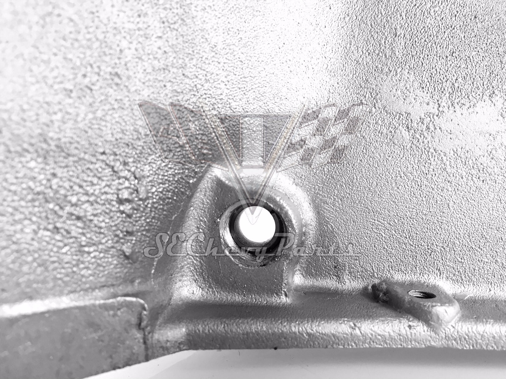This is a beautiful and hard to find high performance Chevrolet bell housing (3779553). All the threads are good.  One thread has been helicoiled (see photo) and other than that the bell housing is in perfect condition.
